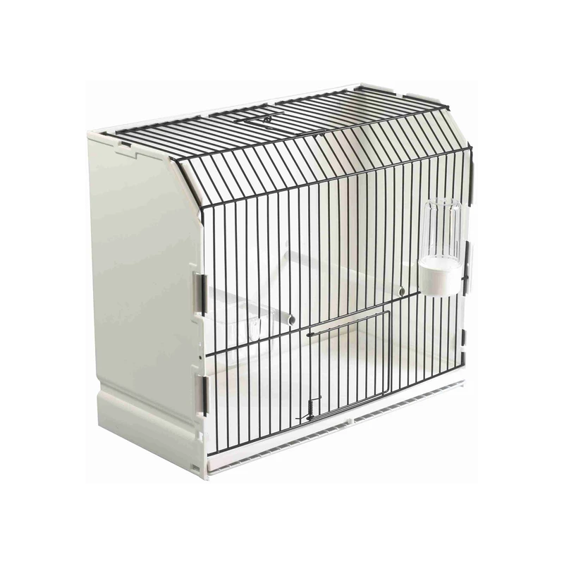 Livrée avec 2 perchoirs, 1 grille de fond, un tiroir, 1 abreuvoir, 1 mangeoire en plastique.