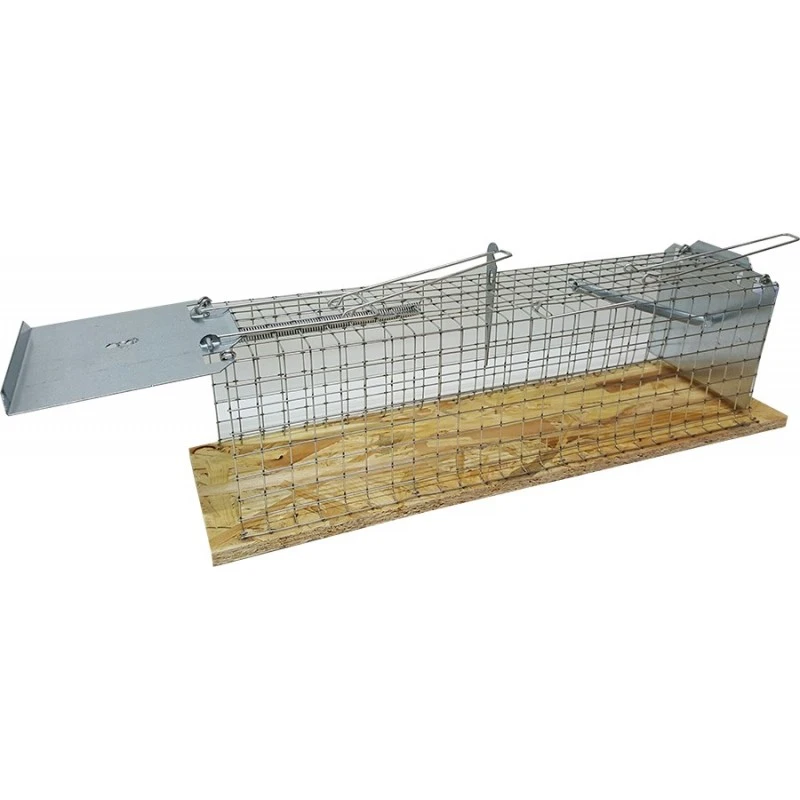 Ce piège possède deux entrées afin d’être plus efficace. Placé sur le chemin des nuisibles, il peut les capturer quelque soit le sens de leur allées et venues.
