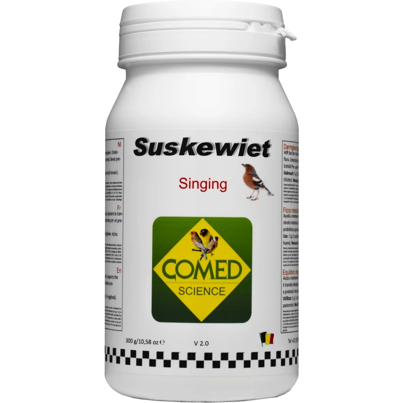 Mode d’emploi: Mélanger 1 cuillère à café pleine soit 5gr de Suskewiet avec 250gr d’aliment, pendant 4 jours avant le concours de chant.