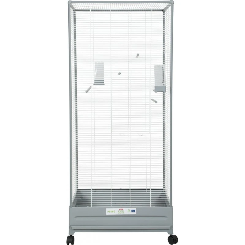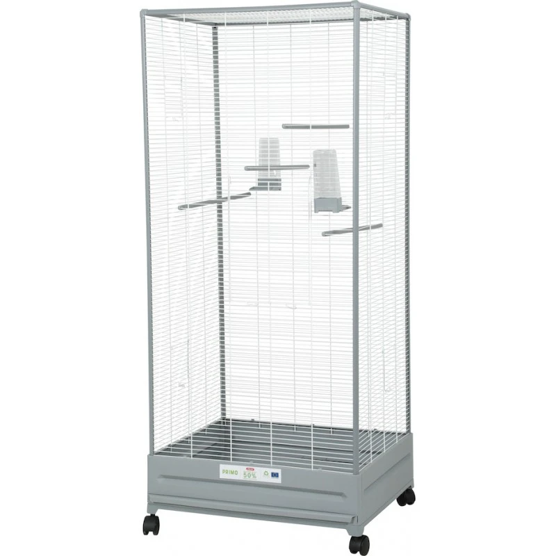 Cette volière éco-conçue PRIMO Camélia pour oiseaux domestiques se compose d’un bac en plastique 50% recyclé. Elle s’intègrera facilement dans les intérieurs grâce à ses coloris classiques et actuels gris clair et blanc. La volière est équipée de 4 longs perchoirs rainurés sur tout la profondeur de la cage qui se clipsent pour plus de sécurité ainsi que de 2 mangeoires/abreuvoirs. Elle dispose également d’un tiroir pour faciliter l’entretien. Elle est équipée de 4 roulettes dont 2 avec frein.